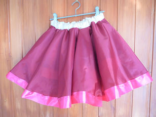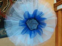 These basic tutus were made in all the colours of the rainbow. Made with a stretch suede top with nylon net skirts and satin ribbons at the waist in a two peice design for easy fitting in little dancers.